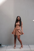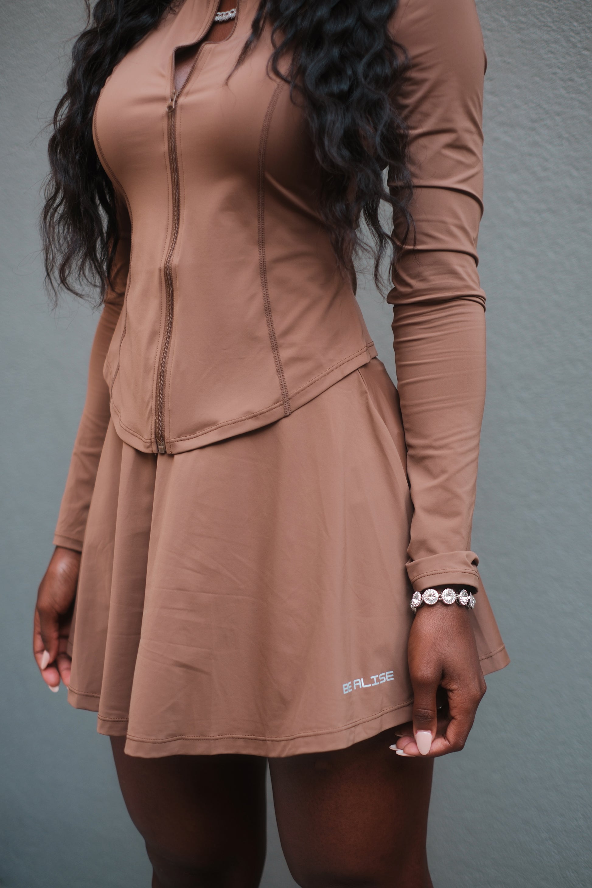 Take your wardrobe to the next level with our Brittany Skirt Set, featuring a sleek flair skirt and matching zip-up crop jacket. Designed for the woman who commands attention, this set combines contemporary style with all-day comfort. The skirt flatters your curves in all the right places, while the fitted crop jacket adds a sporty edge. Crafted from premium, breathable, stretchable material, this set is as versatile as it is chic. Wear the set together for a coordinated look, or mix and match with your wardrobe for endless outfit possibilities. Dress it up with heels for a night out or with sneakers for a sporty look. The Brittany Skirt Set isn't just an outfit---it's a statement!